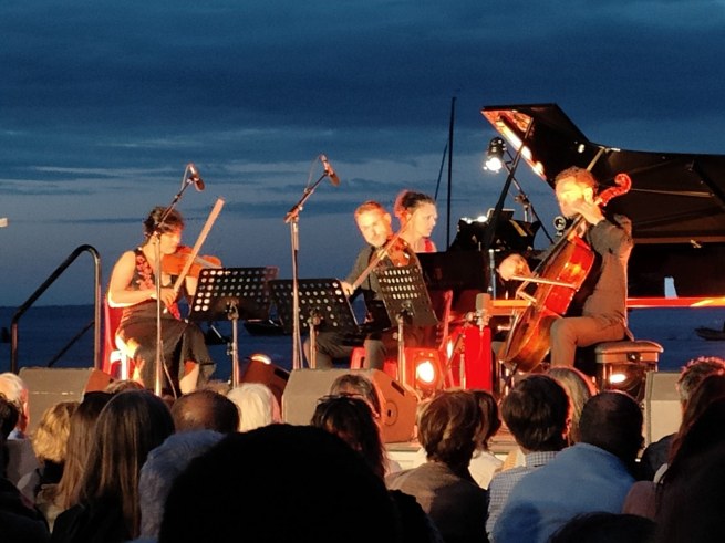 Philippe Maeder au violon, Heyoung Park et Loïc Cavadore au piano ont proposé un moment hors du temps sur la Villa flottante.