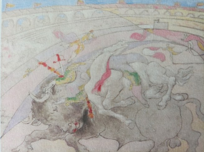 L’artiste, à travers tous ces symboles dessine des scènes qui rappellent la correspondance entre corrida et relations amoureuses sans oublier le personnage admiré du matador, y compris de certaines femmes, qui ont exercé ce métier admiré par l’artiste. Et lorsque la femme apparaît au milieu de ces tableaux de scène de tauromachie, elles ne sont pas représentées soumises ou maltraitées mais plutôt puissantes voire dominatrices.